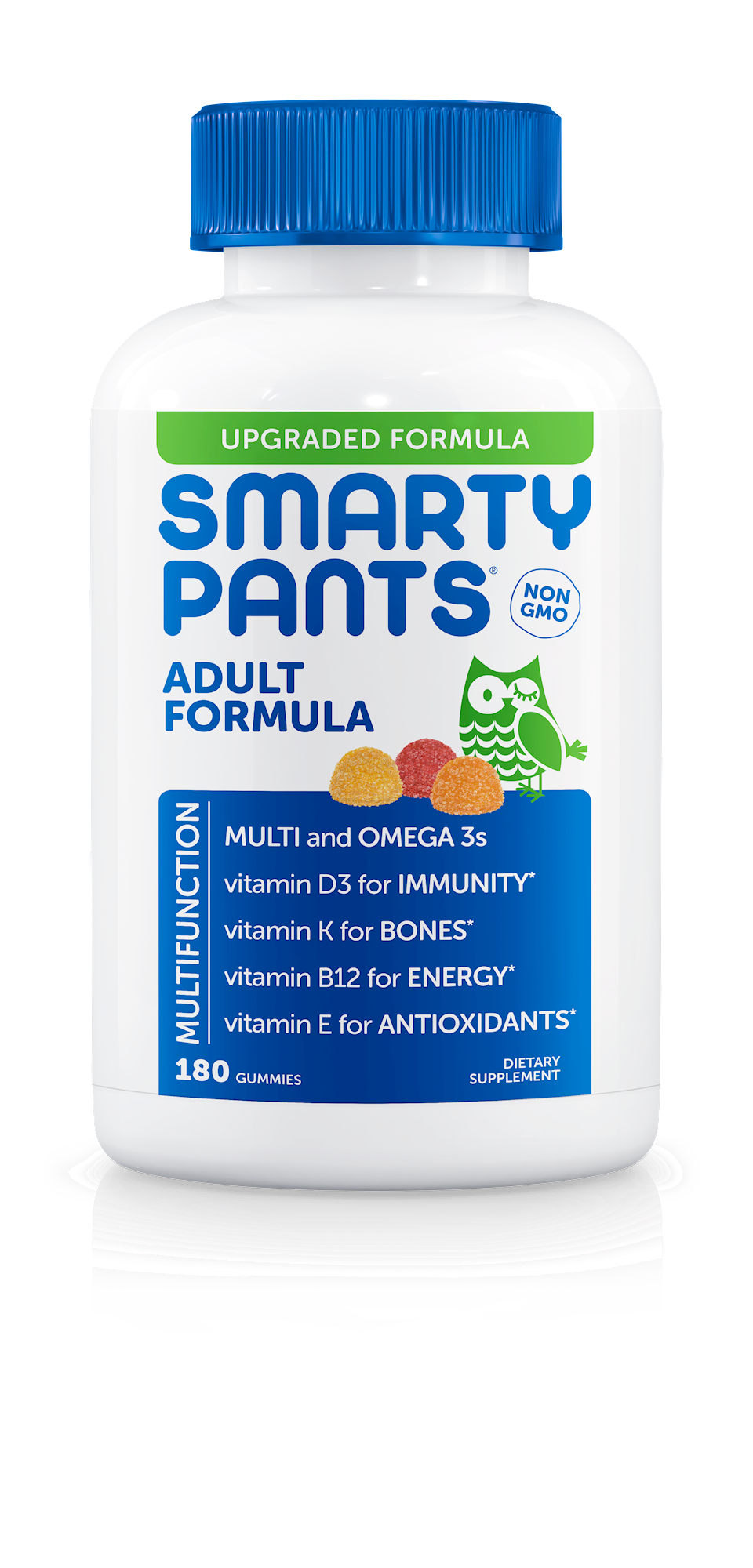Serving Size: 6 Piece Servings Per Container: 30 Disclaimer Amount Per Serving Calories 50 Cholesterol, less than 5 mg Total Carbohydrate 11 g 4% Sugars 8 g Includes 8 g Added Sugars 15% Vitamin A (as 50% beta-carotene, retinyl palmitate USP) 270 mcg 30% Vitamin C (as ascorbic acid USP) 60 mg 75% Vitamin D (D-3 as cholecalciferol USP) (1200 IU) 30 mcg 150% Vitamin E (as d-alpha-tocopherol from sunflower oil) 9.9 mg 66% Vitamin K (K-1 as phylloquinone) 18 mcg 15% Thiamin (Vitamin B-1 as thiamine mononitrate USP) 0.15 mg 13% Riboflavin USP (Vitamin B-2) 0.24 mg 18% Vitamin B-6 (as pyridoxal 5-phosphate) 1.5 mg 88% Folate (as L-methylfolate, calcium salt) (225 mcg L-methylfolate) DFE 375 mcg 94% Vitamin B-12 (as methylcobalamin) 2.7 mcg 113% Biotin USP 24 mcg 80% Pantothenic acid (as calcium D-pantothenate USP) 0.56 mg 11% Choline (as choline bitartrate) 18 mg 3% Iodine (as potassium iodide USP) 135 mcg 90% Zinc (as zinc citrate) 2.4 mg 22% Sodium 25 mg 1% Fish Oil 510 mg Total Omega-3 Fatty Acids 150 mg EPA (Eicosapenteanoic Acid) 84 mg DHA (Docosahexaenoic Acid) 66 mg Inositol FCC 3 mg Vitamin K-2 (as menaquinone-7 FCC) 12 mcg Other ingredients: Organic Cane Sugar, Organic Tapioca Syrup, Gelatin, Pectin, Citric Acid, Natural Flavors, Natural Colors Added (Organic Black Carrot Juice Concentrate, Organic Turmeric), Essential Omega 3 Oils from Sustainable Fisheries