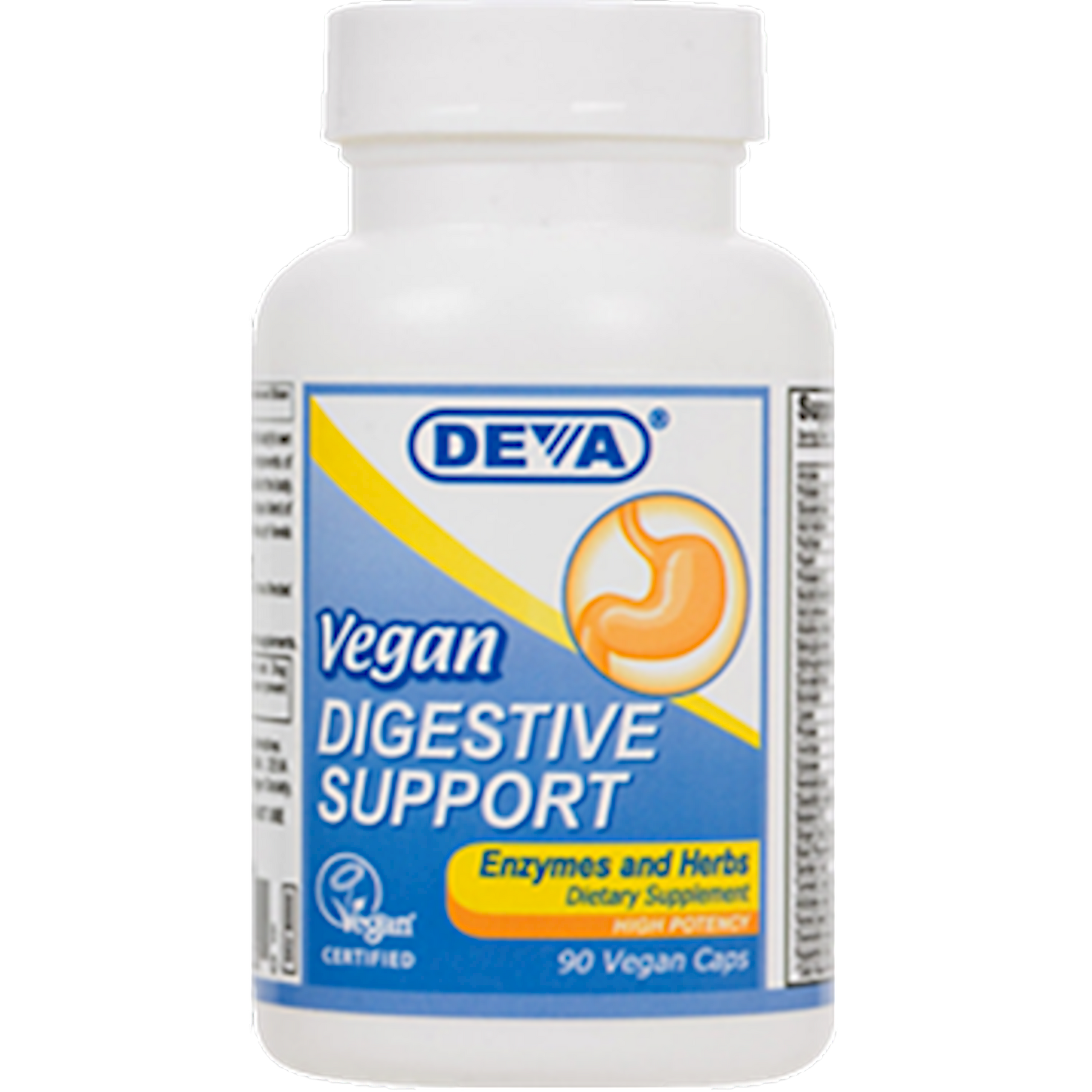 All vegan, broad-spectrum digestive product to supplement the body's own digestive capacities. Enzymes help break down the nutritional components of proteins, fats and carbohydrates, making these nutrients available for the body. Deva Digestive Supplement is formulated to contain a unique blend of enzymes and herbs that provides activity throughout various pH levels encountered in the gut.* Providing support for your digestive system is important. Everything we ingest affects the balance of pH and healthy flora in the gut, and ensuring that we have as much natural balance as possible is one of the keys to health. Taking Deva's supplement that combines digestive enzymes and herbs could be an excellent idea. If you are in need of a supplement that offers digestive enzymes and herbs while providing a vegan blend, Deva Digestive Enzymes+ may be the thing you are looking for. Some companies claim their bacterial enzymes are vegan when in fact dairy is used as the feeding media for some of their bacteria. Deva Digestive Supplement enzymes are derived from bacteria that are grown on non-animal, non-dairy media.* Deva Digestive Enzymes+ supplement is 100% vegan, vegetarian. Deva products have been registered by the non-profit Vegan Society. This non-profit organization, which first coined the phrase vegan, has a strict and detailed registration process for vegan products.